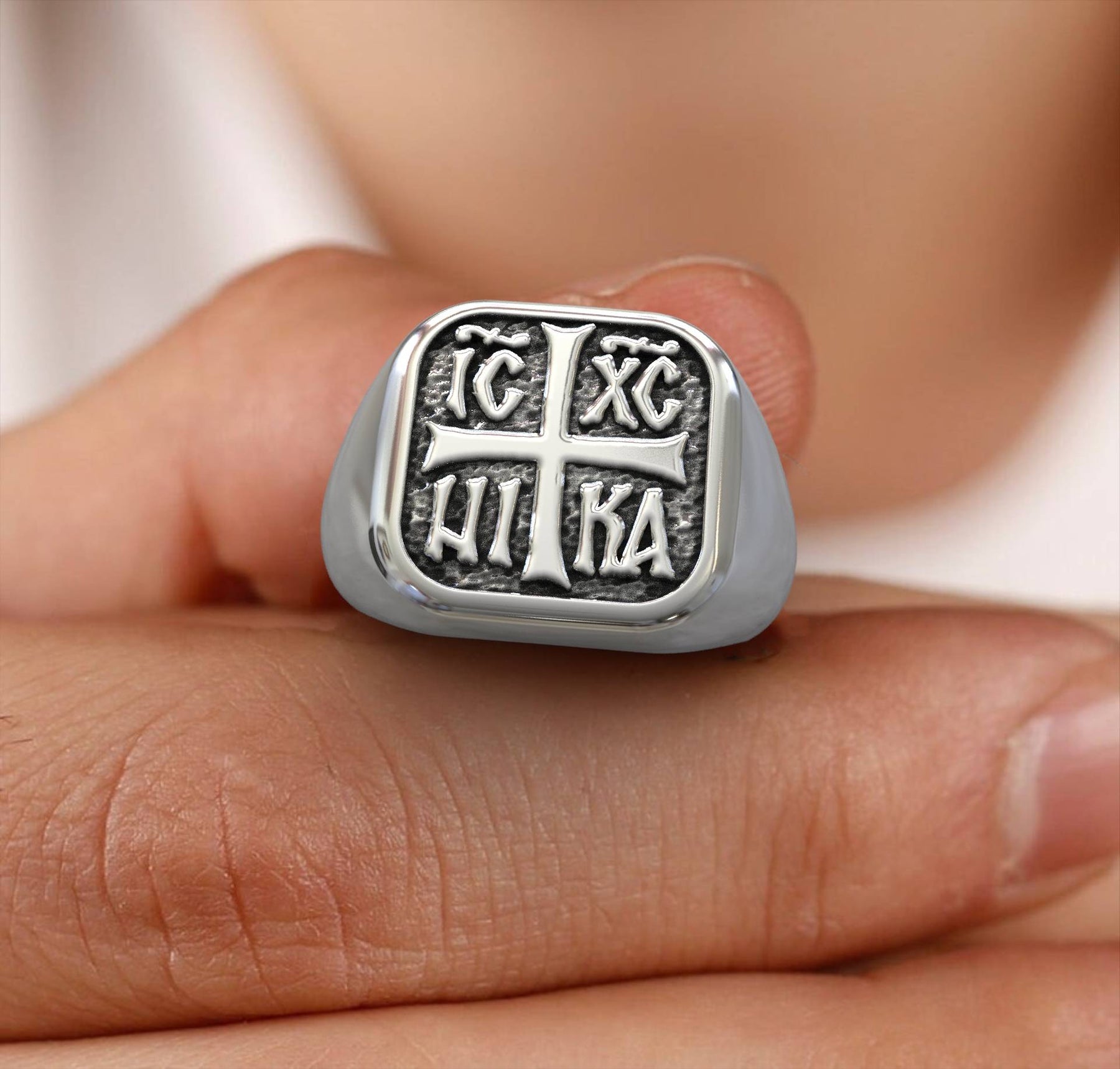 Unser Silver Saint Nectary Orthodox Men's Ring (€185,00) preist den heiligen Nektarios von Ägina, einen der am stärksten verehrten modernen Heiligen der orthodoxen Kirche. Seine Darstellung im Schmuck steht für Heilung, Mitgefühl und festen Glauben.