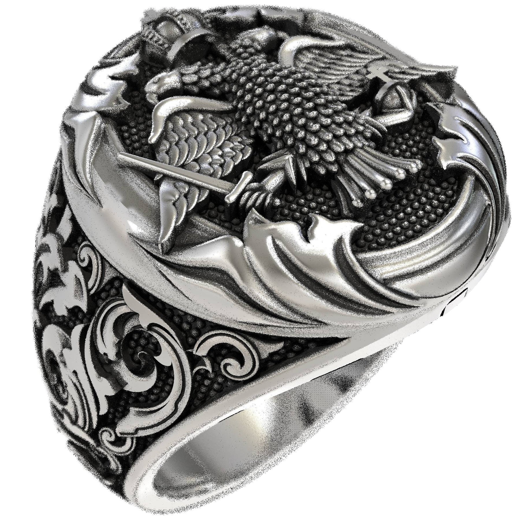 Unser Archangel Michael Cross Protector Signet Ring (€175,00) kombiniert die starke Symbolik des Erzengels mit dem zeitlosen Kreuz. Dieser Siegelring aus 925er Sterlingsilber stellt dar den Erzengel Michael in all seiner Prachtentfaltung – ein Meisterwerk der Goldschmiedekunst, das Schutz und Stärke ausstrahlt.